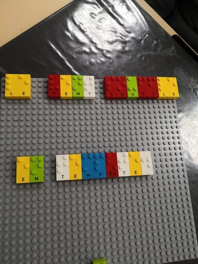 Чтобы научить их понимать и писать слова, она использует игрушки по типу Лего со шрифтом Брайля.