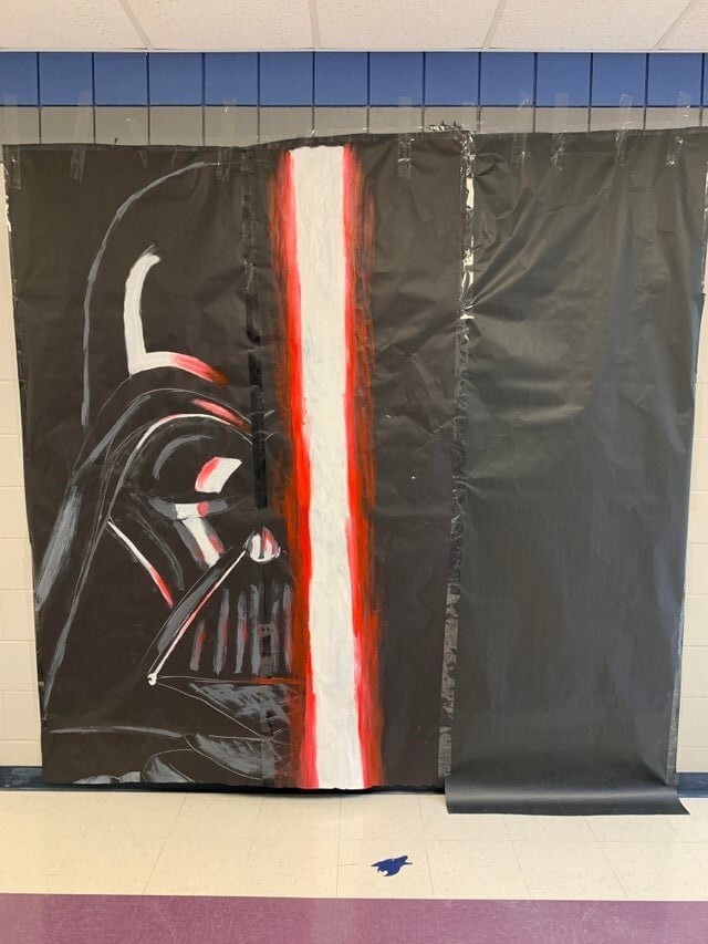 Наш учитель по рисованию сделал огромный постер с Дартом Вейдером, чтобы мотивировать студентов на хорошую сдачу экзаменов