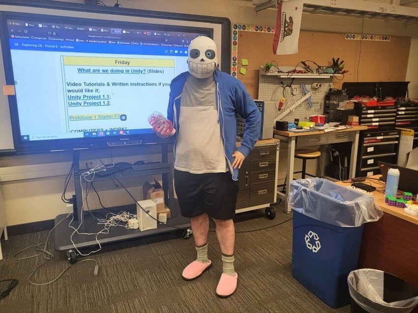 Вчера был день костюмов в школе, и наш учитель пришёл в образе Санса