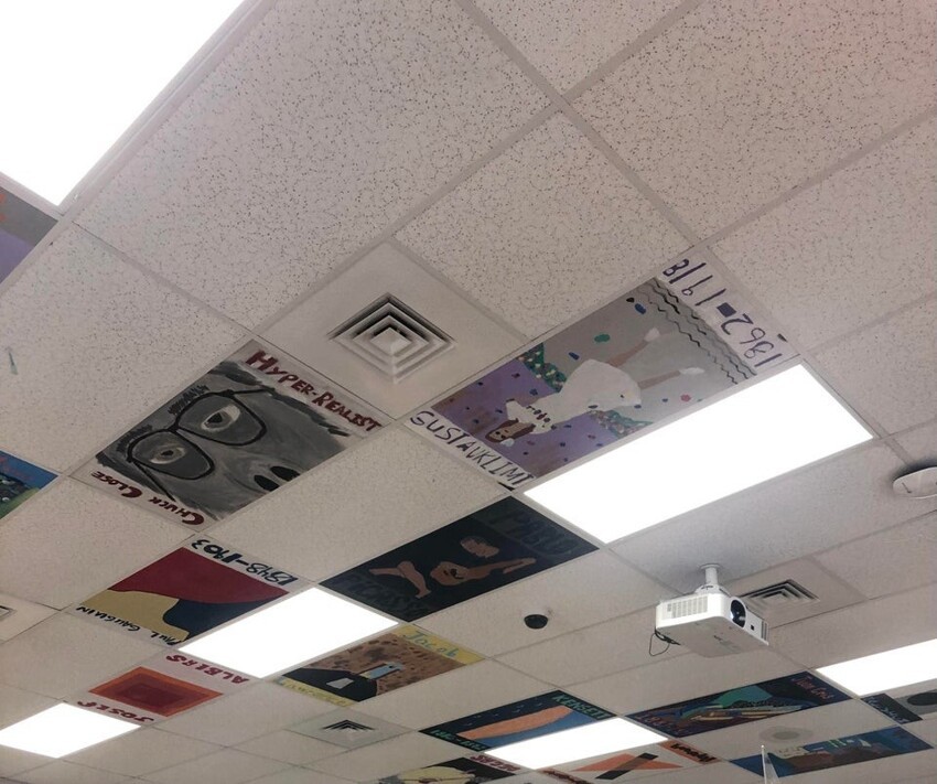 Учитель по рисованию разрешил ученикам разрисовать потолок в его классе