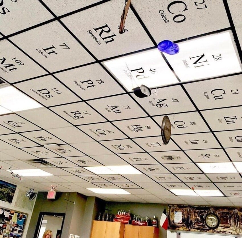 Наш преподаватель по химии превратил потолок в классе в огромную Периодическую таблицу