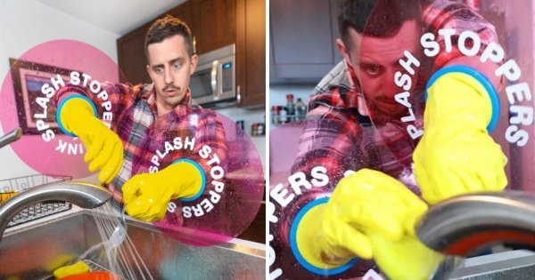 Резиновые перчатки со встроенным щитом для блокировки брызгающей воды, которая может появляться при мытье посуды