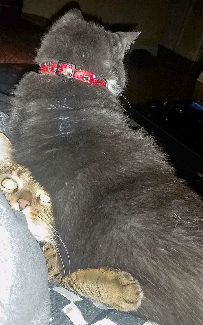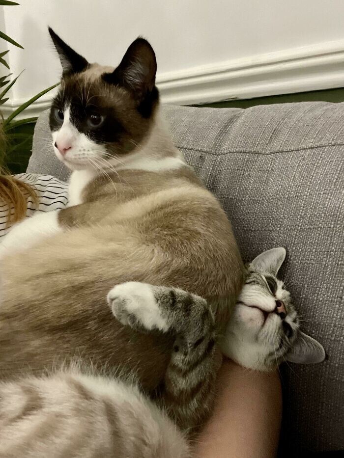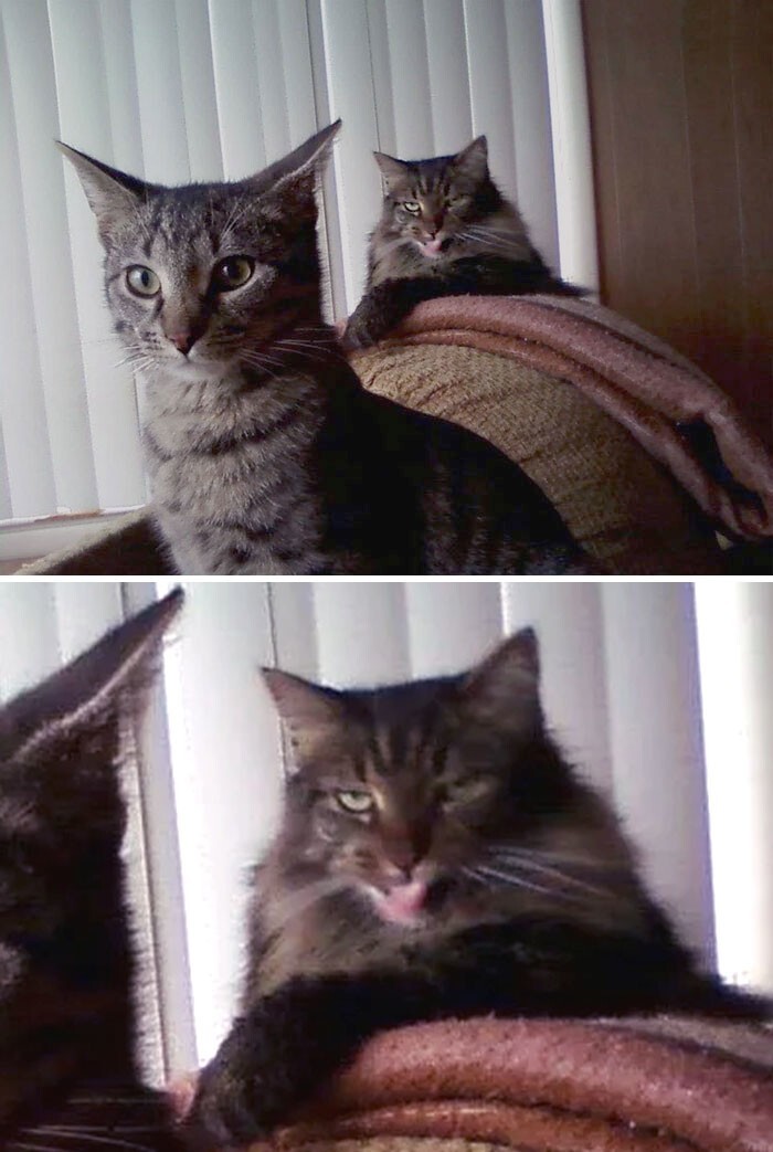 26. "У нас появился новый котёнок. Кошка, похоже, не особо довольна"