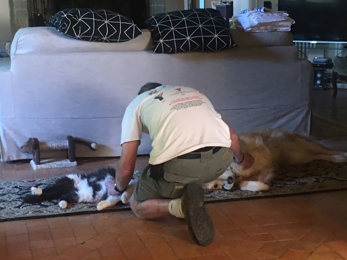 20. "Кошка потребовала почесать животик. Подошла собака, и тоже попросила её погладить"