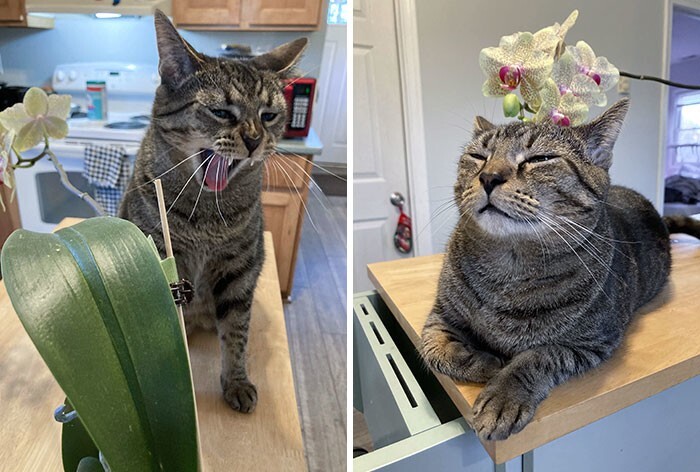 23. "А я пыталась сфотографировать свою орхидею. Кошка захотела, чтобы я фотографировала только её"