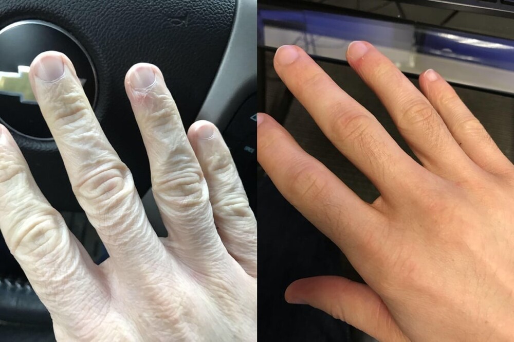 8. Моя обувь до и после того, как я месяц проработал помощником повара