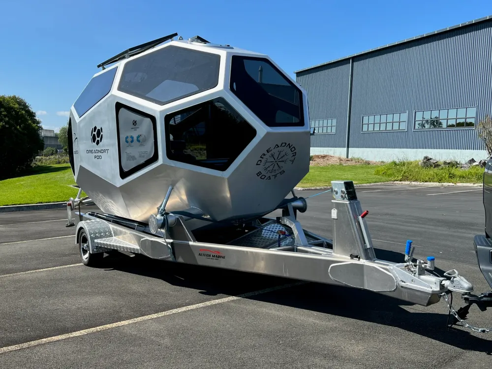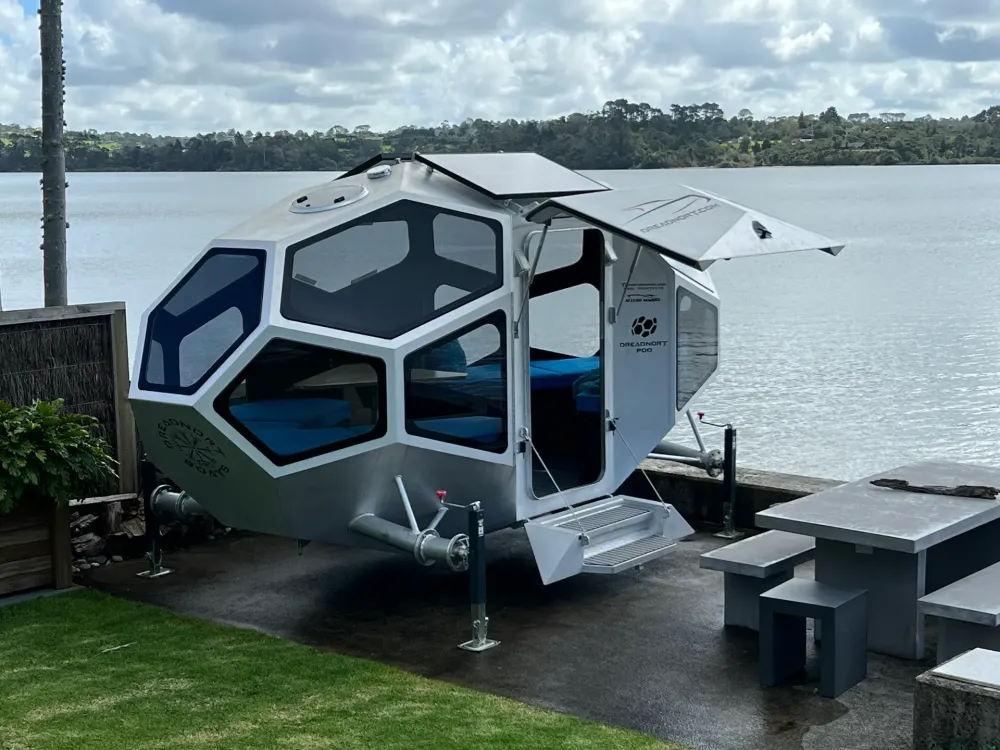 Dreadnort Boats - компания из Новой Зеландии выпускавшая ранее различные плавсредства, решила выпустить кемпер необычной формы. Назвали его POD - Point of difference (точка отличия). Внешне он больше похож на НЛО и отлично смотрелся бы на прицепе у Tesla Cybertruck.