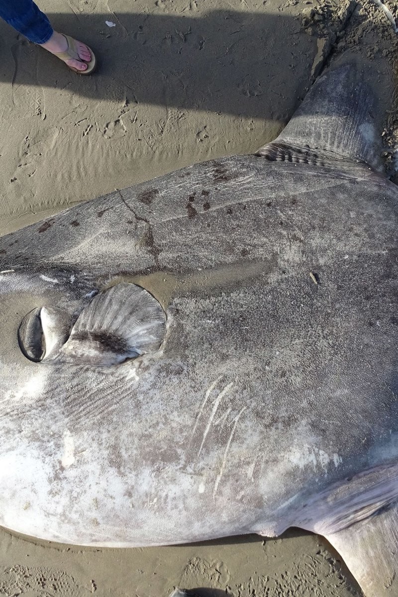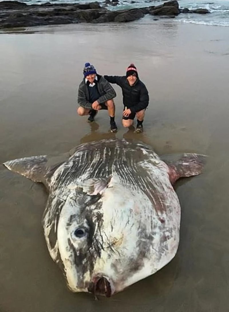 Эту рыбу заметили посетители пляжа на юго-западном побережье австралийского штата Виктория. Кэт и Том Рэмптон, которые оба оказались ветеринарами, были в шоке от размеров рыбки - та была около 2 метров в длину. По словам ветеринаров, они никогда раньше не видели подобного вживую. Оказалось, это луна-рыба (или рыба-солнце), которые являются самыми тяжёлыми из современных костных рыб. Но эта рыбина - ещё не самая крупная особь. Их размеры могут достигать до 4,2 метра в ширину и до трёх метров в длину. Максимальный вес взрослой рыбы-луны - 2 000 кг.