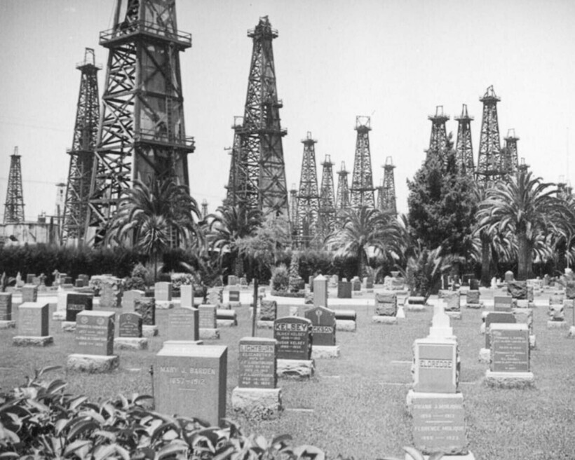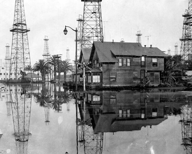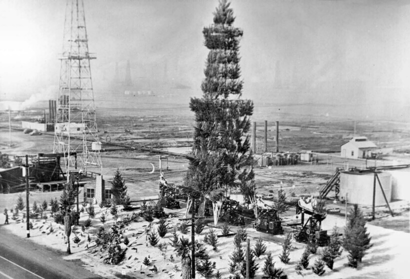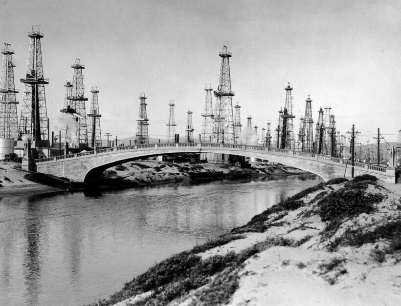 Горизонт Лос-Анджелеса и других городов штата выглядел весьма удручающе: это было до расцвета шоу-бизнеса и, конечно, задолго до того, как штат стал инновационным центром страны. Когда-то тут добывали нефть.