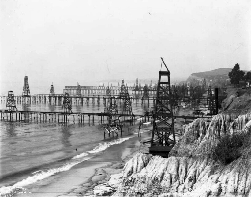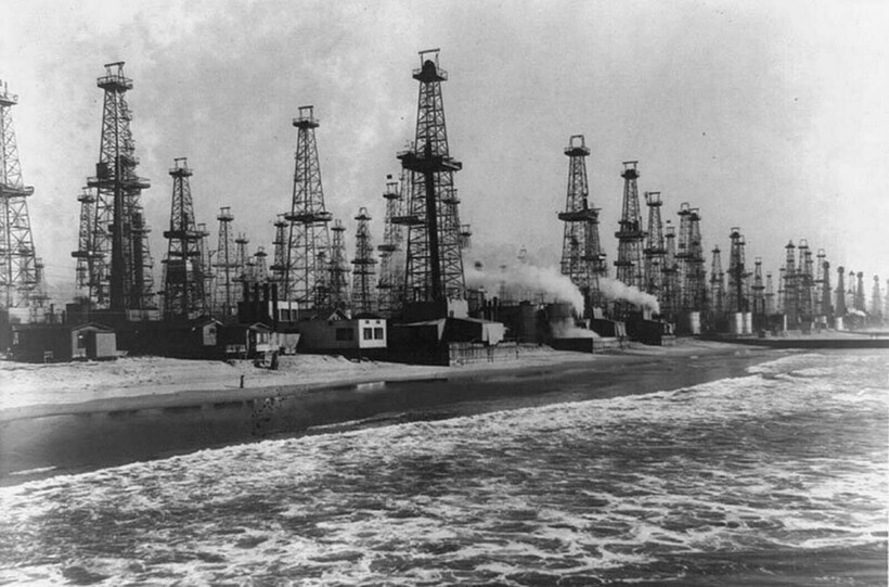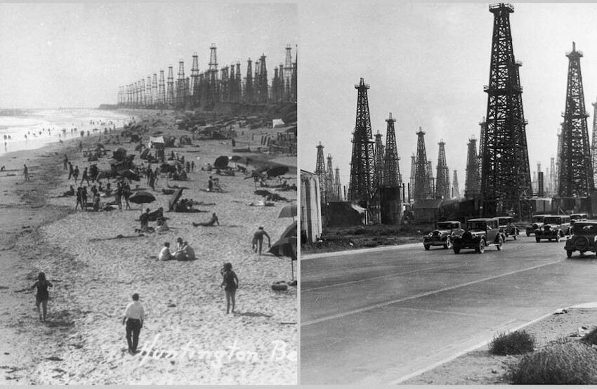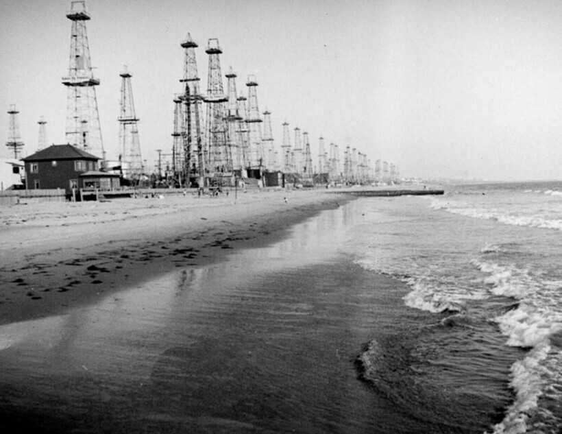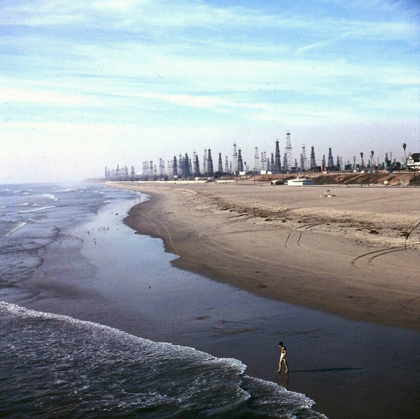 Когда-то калифорнийские пляжи выглядели не так идиллически, как сегодня, ведь вместо кафе, магазинчиков и отелей на теплом песке возвышались десятки нефтяных вышек.