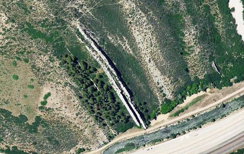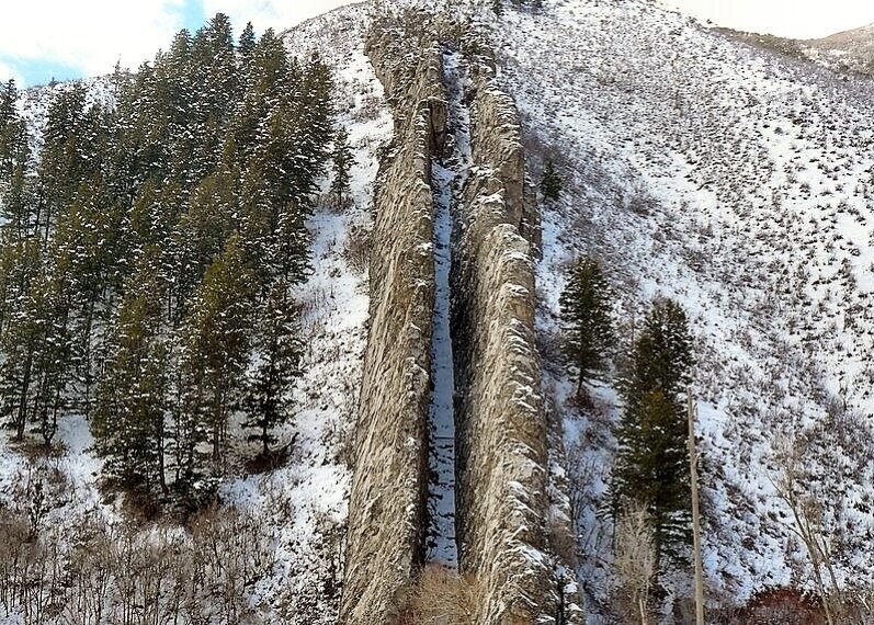 США, штат Юта, округ Морган, каньон Вебер. Именно здесь находится странное гигантское сооружение в виде горки с двумя ограждениями по бокам. Даже скорее оно напоминает не гoрку, а жёлоб, по которому впору спускать воду.