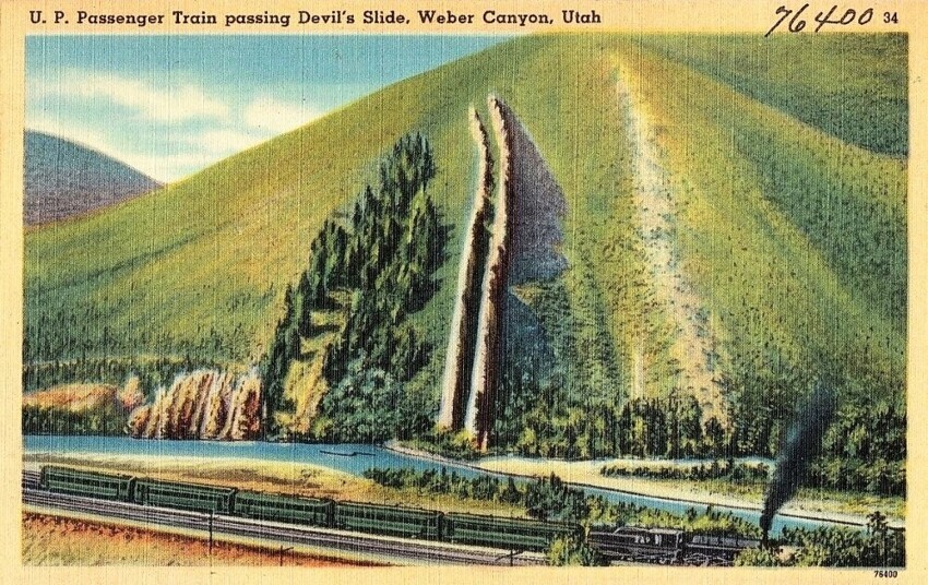 Из-за размеров это образование названо «Спуском дьявoлa». Между прочим, гоpка очень напоминает прямую бобслейную дорогу. Её ширина – около 6 метров, а высота стенок в некоторых местах доходит до 12 метров. При этом достопримечательность каньона Вебер тянется сверху вниз на 60 метров.