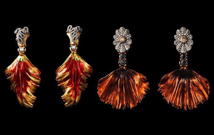 Черпая идеи не только в прошлом, но и в красоте природы, Отто Якоб совмещает, казалось бы, несовместимое. В его украшениях, сложно сконструированных, многосоставных, можно найти и слепки крыльев кузнечика, и формы грецкого ореха, и фигуры кельтских богов, и переливающихся хамелеонов из витражной эмали.