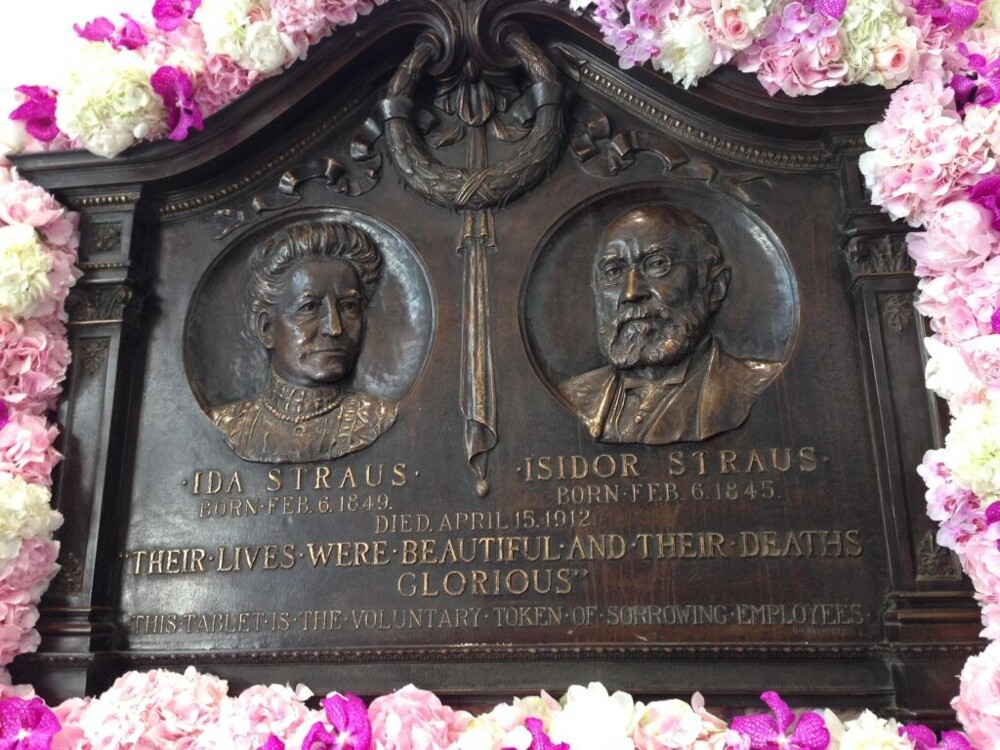 Мемориальная доска Иды и Исидора Штраус в Macy's