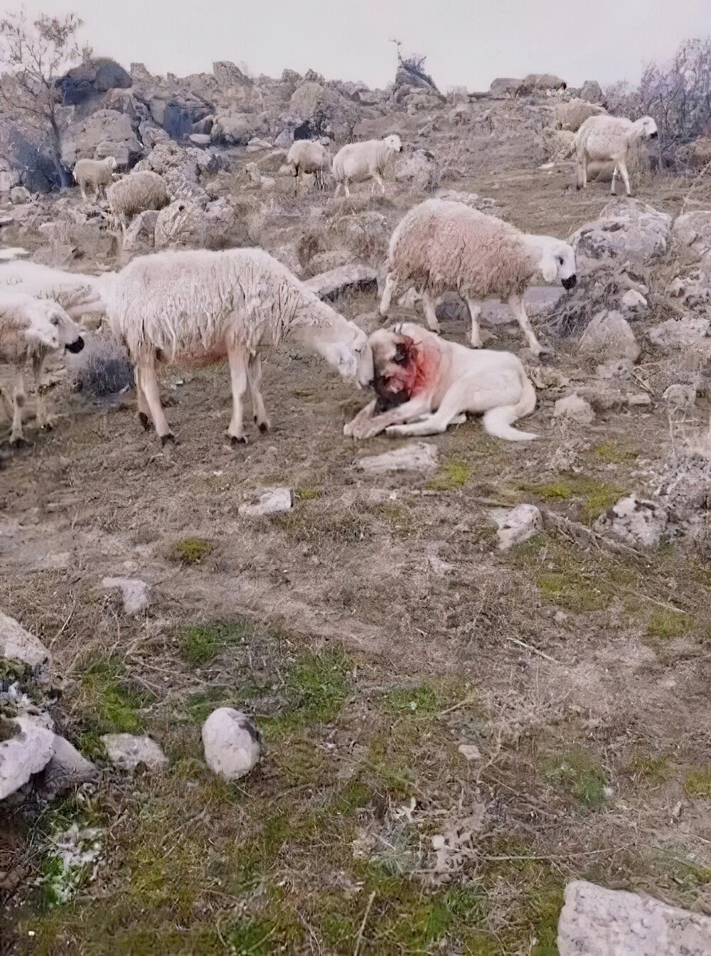 9. Овца утешает собаку после того, как та защитила овечье стадо от нападения волка