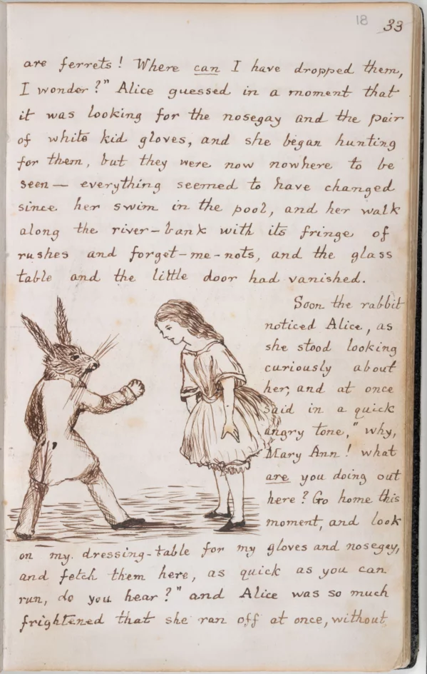 Рассказ настолько понравился реальной Алисе, что она уговорила автора записать его, чтобы она могла его перечитывать, когда захочет. Доджсон пообещал и… пропал. Сложно сказать, что произошло на самом деле, но дружба с семьёй Лидделл прервалась.