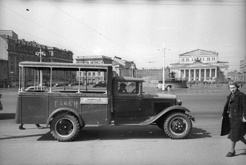 Такси на площади Свердлова (Театральная площадь). Москва, 1945 - 1949г.г.