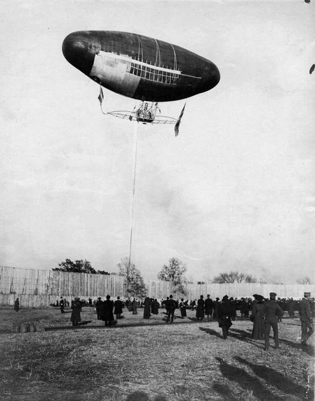 Французский дирижабль в полете на Всемирной выставке в Сент-Луисе, Сент-Луис, штат Миссури, 1904 год