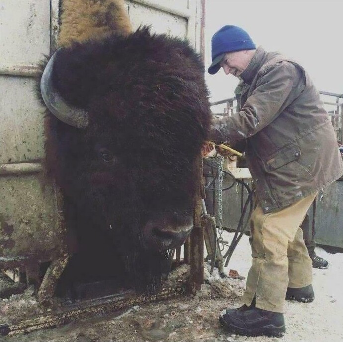 18. Ветеринар берёт анализ крови у бизона