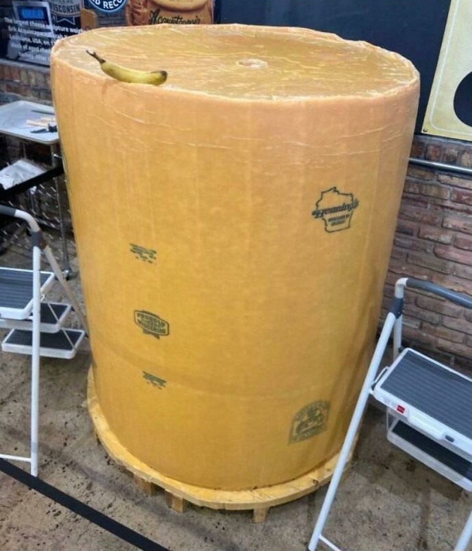 29. Огромный блок сыра чеддер в сравнении с бананом