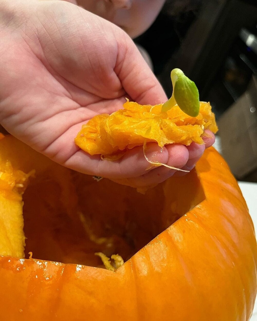 Мощный росток в тыкве