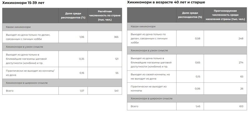 После пандемии коронавируса количество хикки серьёзно увеличилось. Японцы старательно придумывают отмазки самого разного рода: отсутствие образования, вымышленные болезни, боязнь общества. А пожилые родители, для которых, как для всех японцев, семья - это святое, тащат своих отпрысков столько, сколько могут. Их, конечно, никто не заставляет, но сложность в том, что папа и мама умирают. И их дети остаются один на один со стиральными машинами, пылесосами и плитами. Один на один с общественным транспортом, которым они не умеют пользоваться, и счетами, которые они не умеют оплачивать.