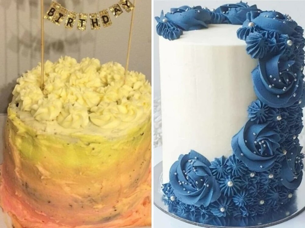 Мой первый торт по сравнению с моим последним. Разница за 18 месяцев практики!