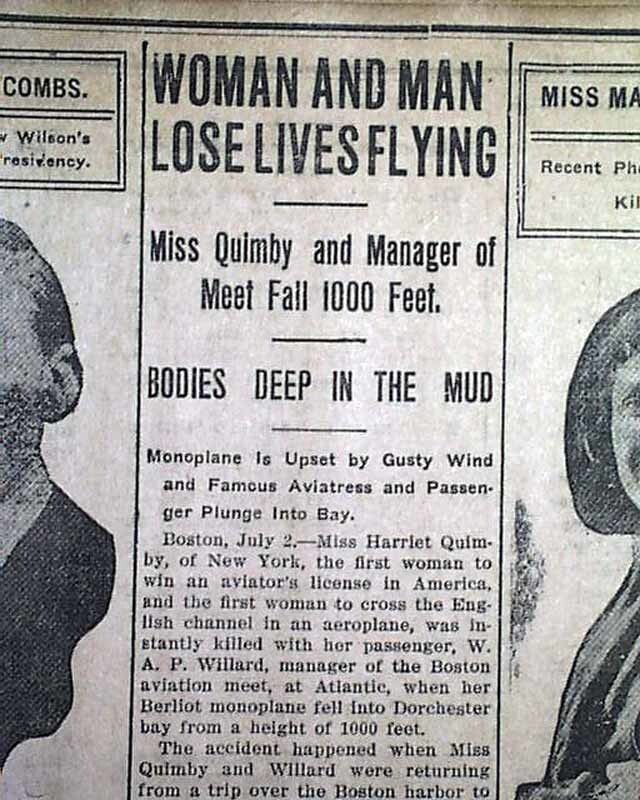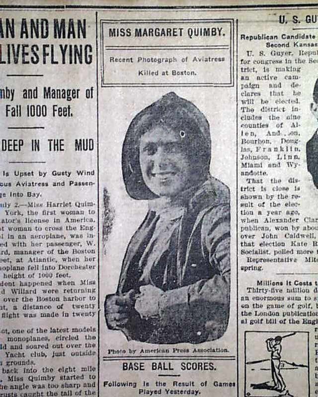 Куимби всегда была там, где было что-то новое. В 1910 году она заинтересовалась авиацией, побывав на одном из авиатурниров. Там она познакомилась с одним из лучших пилотов и инструкторов - Джоном Мойсантом. Так уж вышло, что сестра Джона тоже "заболела" авиацией, поэтому две дамы стали вместе учиться летать. В школу их не приняли, но частные уроки Матильда и Гарриет брали, а в 1911 года всё-таки получили долгожданные лицензии пилотов.