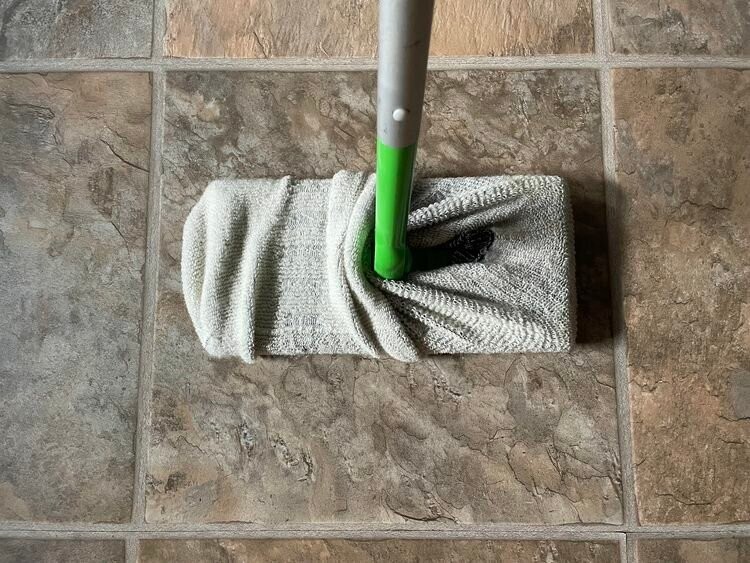 Можно использовать старые носки вместо сменной насадки на швабру для мытья пола