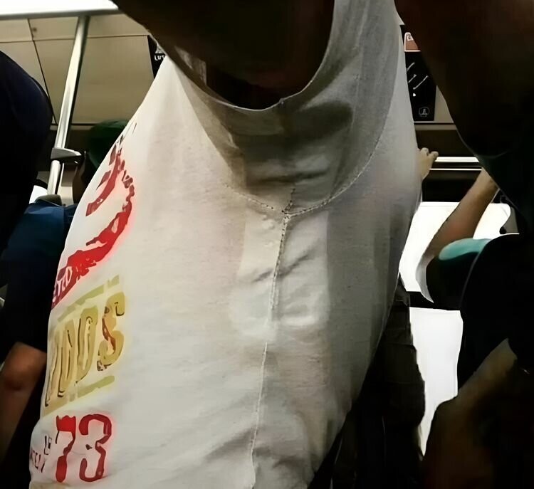 Парень использовал гигиенические прокладки, чтобы справиться с потом, приклеив их к футболке там, где она соприкасается с подмышками. Существуют футболки, в которых эта функция является встроенной, но это уже совсем другая история.