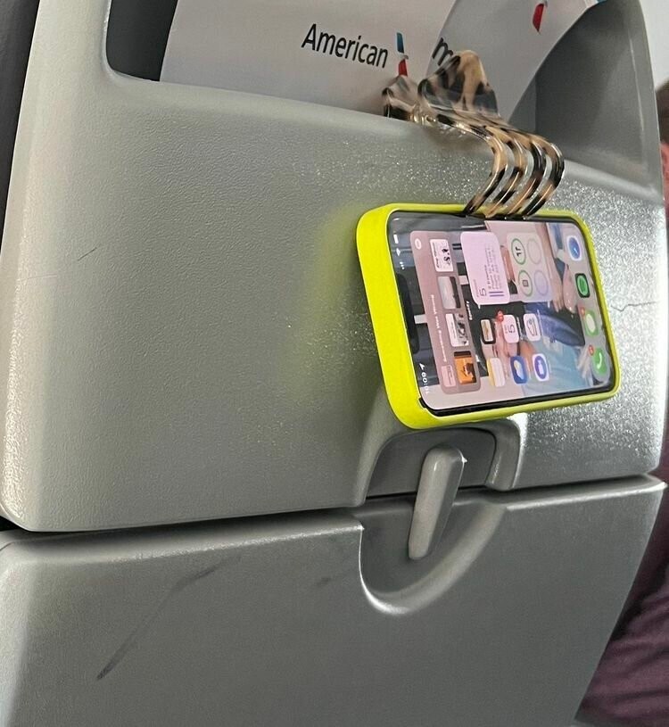 Крабик для волос может выполнять роль держателя для смартфона во время перелёта или долгой поездки