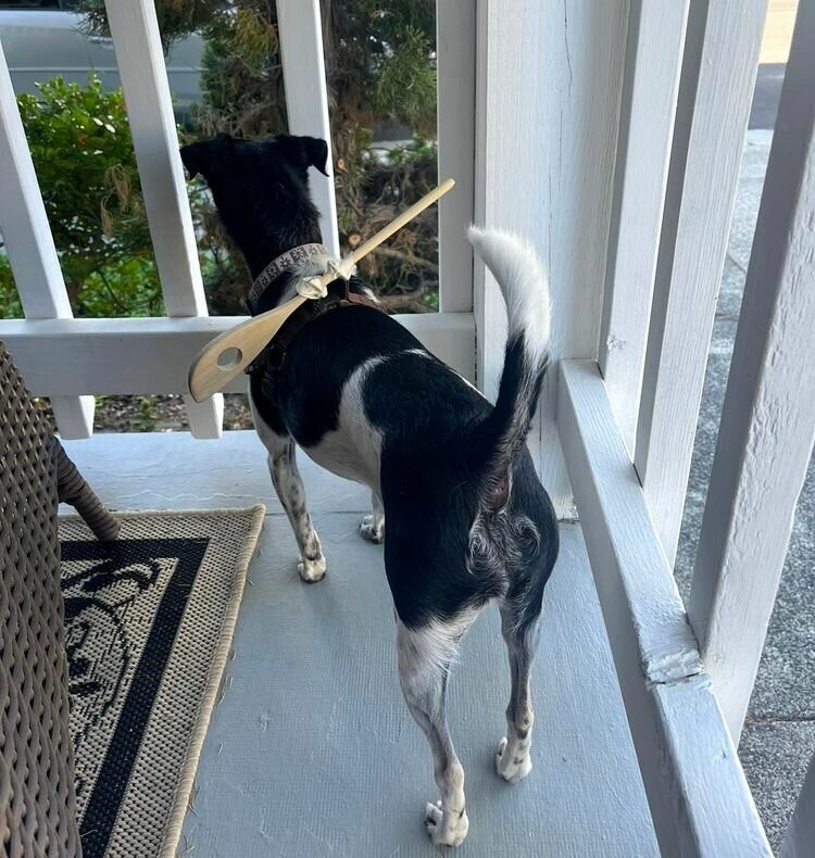 «Кухонная лопатка помогает удержать мою собаку на крыльце, не позволяя ей гоняться за белками»