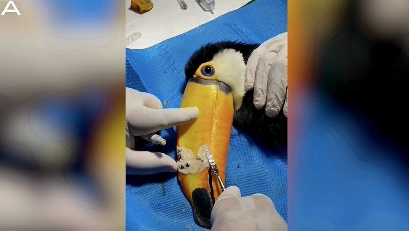 Тукану, ставшему жертвой жестокого обращения, сделали протез клюва (2 фото + 1 видео)