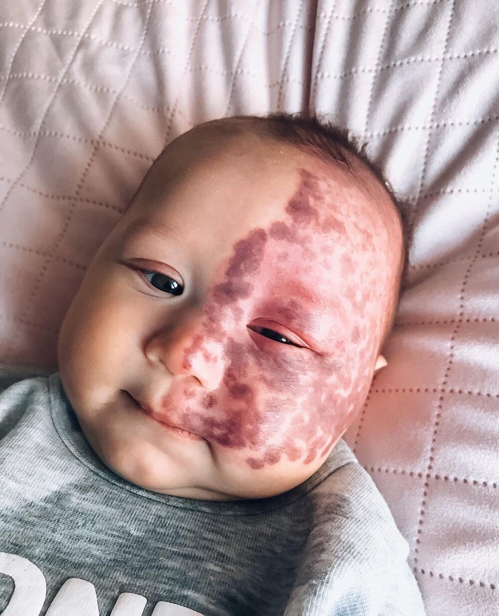 Врачи диагностировали у новорождённого редкое заболевание. У мальчика на лице было большое родимое пятно. Обычно подобные отметины на лице доброкачественные, но могут привести к синдрому Стерджа-Вебера и глаукоме. Подобные диагнозы сопровождаются судорогами и другими нарушениями, в том числе зрения, что может привести к слепоте.