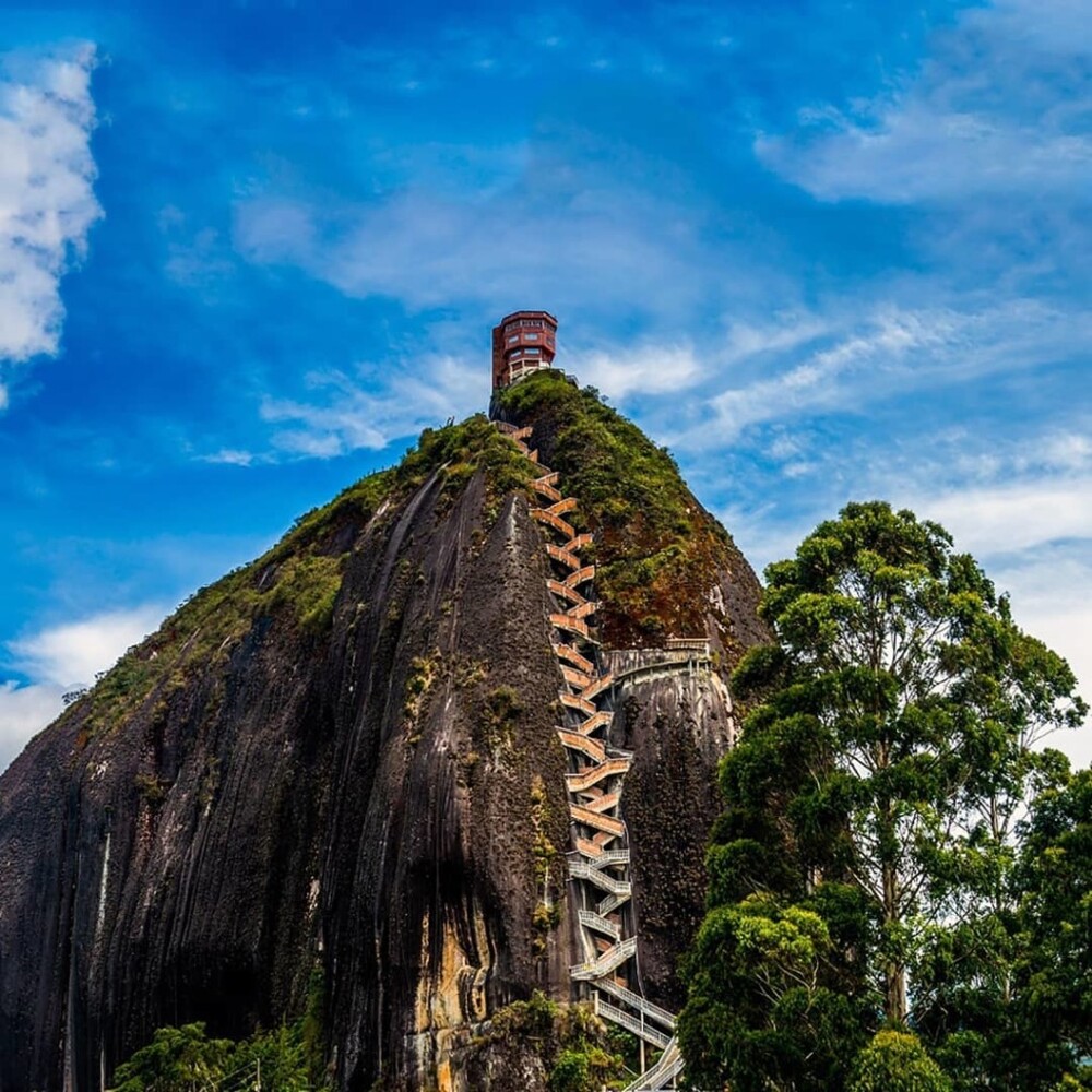 15. Скала Эль-Пеньон-де-Гуатапе находится в Колумбии, между городками Эль-Пеньол и Гуатапе. Высота каменного монолита — 220 метров. Считается, что возраст скалы составляет более 70 миллионов лет