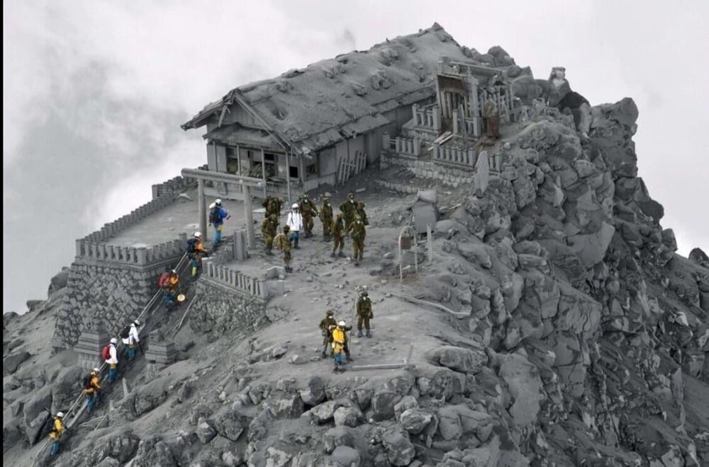 14. Храм, покрытый пеплом после извержения вулкана, Китай