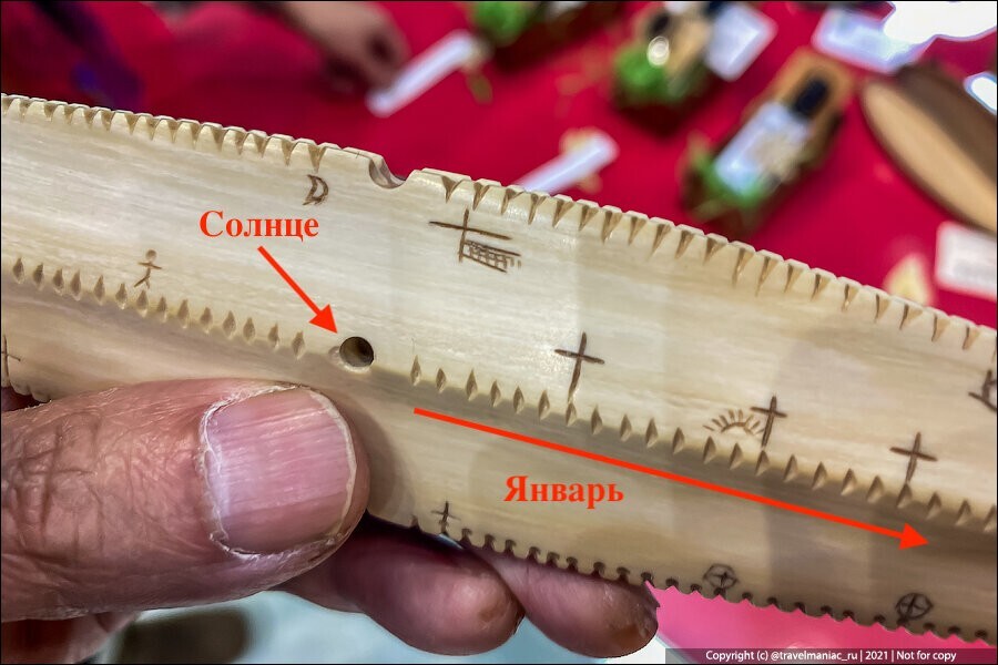 В этих дневниках отмечают, когда начинается нерест рыбы и олени сбрасывают рога, когда родился ребенок или кто-то ушел в страну вечной охоты. Когда началась зима и полярная ночь. В общем, все самое важное для людей в их не такой уж и разнообразной жизни.