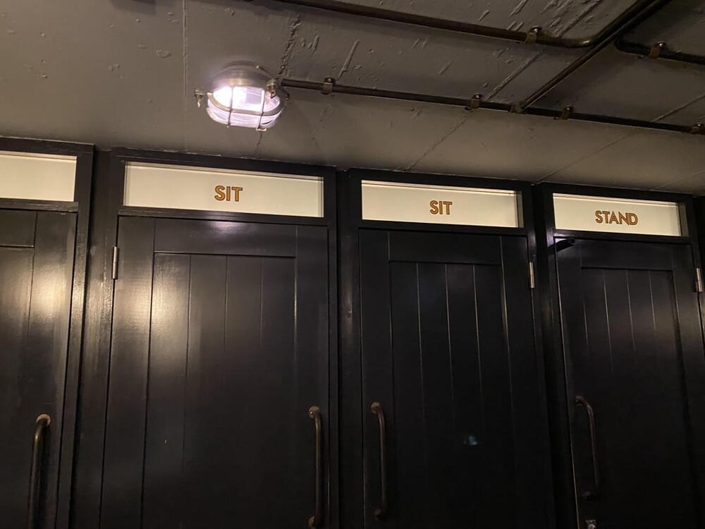 8. В барах на кабинках есть подписи, чтобы мужчины и женщины понимали, в какую им заходить: есть "сидячие" и "стоячие"