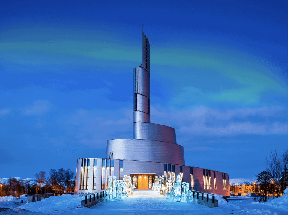 Здание специально облицовано титановыми панелями. Благодаря им храм способен менять свой цвет в зависимости от падающего на них света. Особенно красиво это выглядит при наступлении северного сияния.