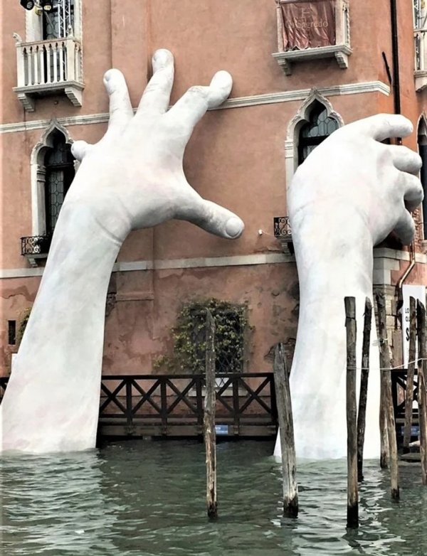 Скульптура Лоренцо Куинна, которая должна привлечь внимание к проблеме затопления Венеции