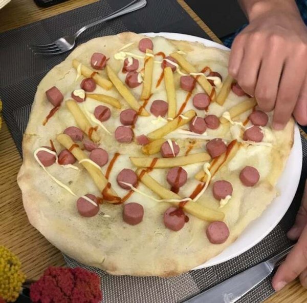 Это пицца паперино (или «Дональд Дак»). Чаще всего ее заказывают дети. В ней недорогие ингредиенты, и ребятишкам нравится.