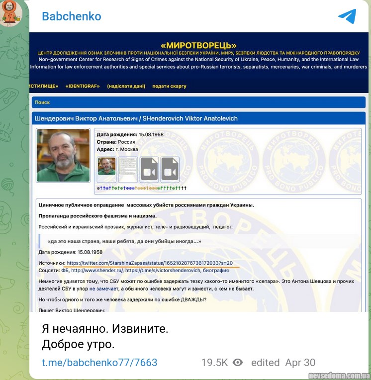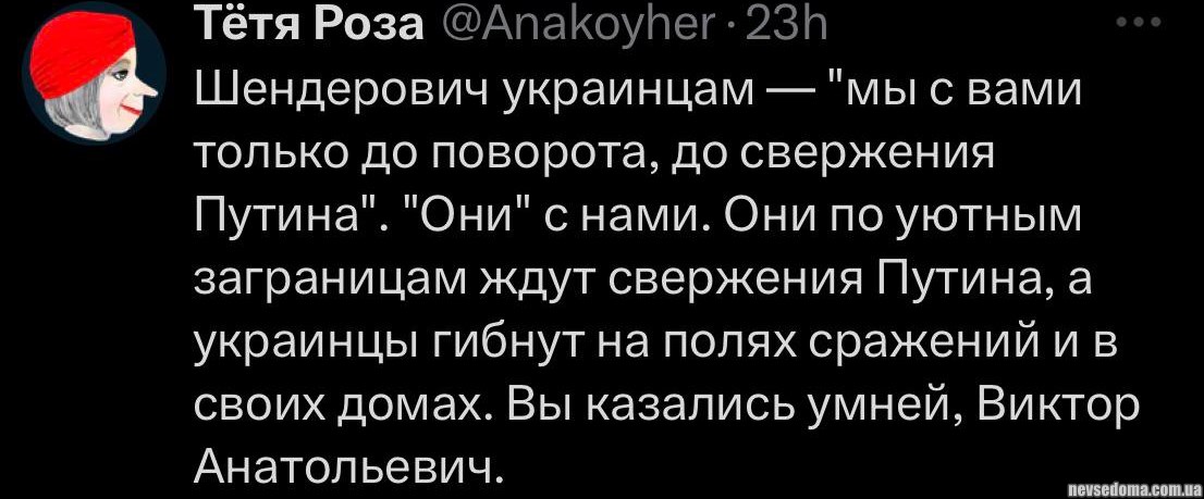 Скиньте кто-нибудь Шендеровичу, пожалуйста. Можете заодно полюбопытствовать, будет ли он х*й.