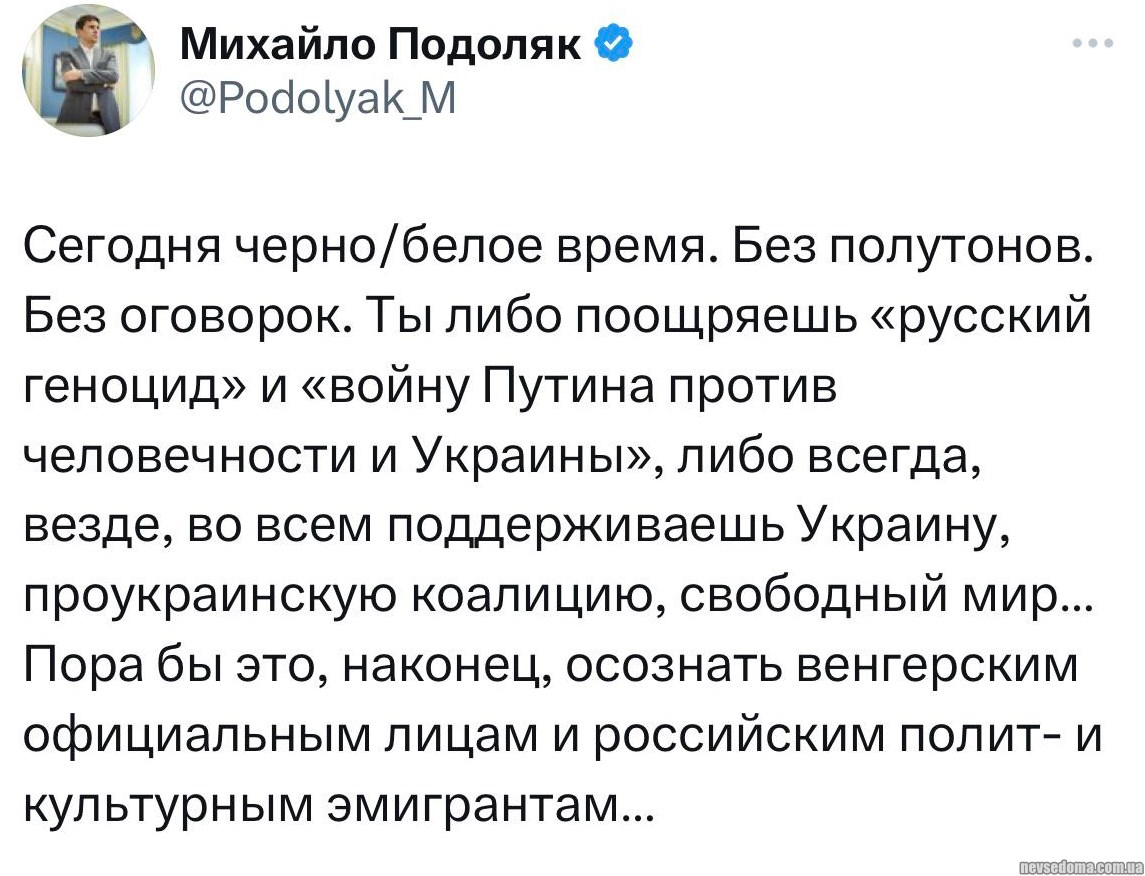 - Відповідь російським лібералам. І Угорщині , вашу мать.