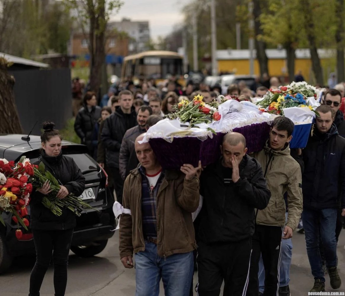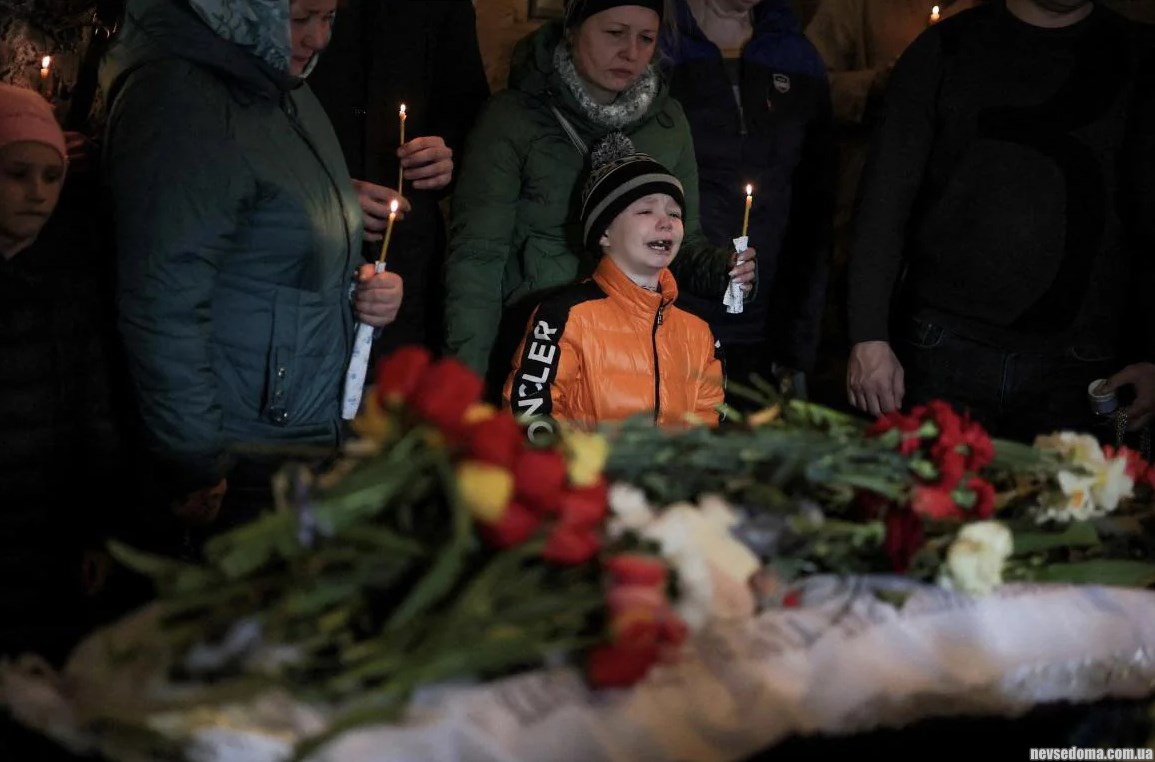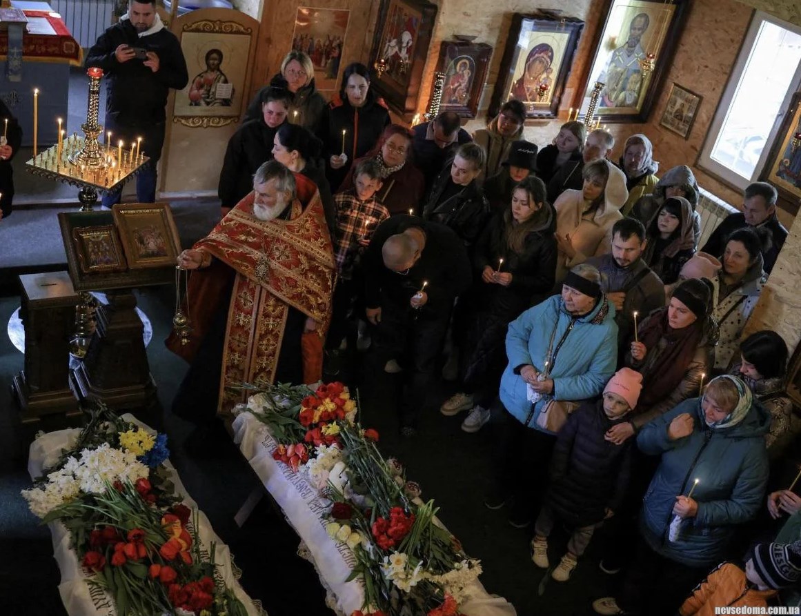 - Фото из Умани - похороны 11-летней Софии и 17-летнего Кирилла, погибших в результате российской ракетной атаки. Семья сбежала от войны в Умань из Луганщины.