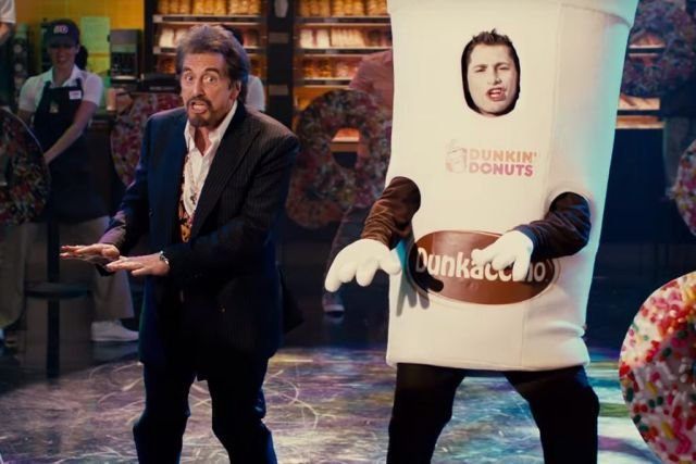 Сыграл самого себя, то есть пожилого актёра, который снимался в гениальном кино, а теперь не прочь и в рекламе Dunkin’ Donuts сняться, где он танцует и читает рэп, представляя публике новый кофейный напиток — данкачино.
