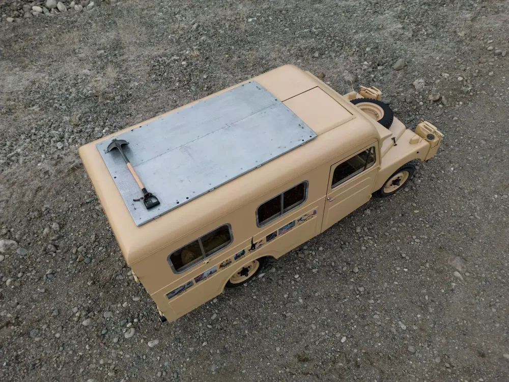 Автомобиль, собранный в мае 1957 года отправили в ателье Pilchers of Wimbledon, где он обзавелся уникальным алюминиевым кузовом со смотровым люком, внешним солнцезащитными козырьком, мощной лебедкой и двумя кроватями для путешественников. Под капотом был простой четырехцилиндровый двигатель, способный переваривать топливо любого качества, доступное в не самых цивилизованных странах... Назвали автомобиль "The Grizzly Torqeu", как корректно это перевести не знаю. Есть идеи?! Главное, связано с медведем гризли.