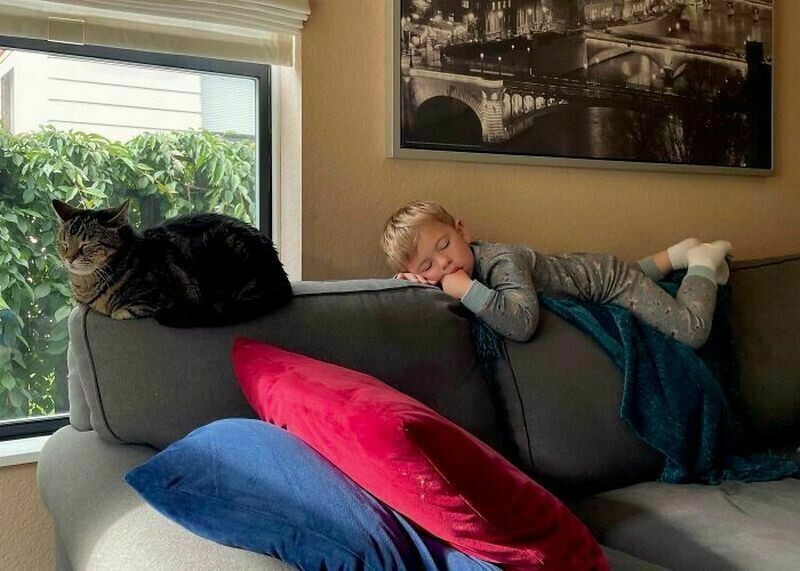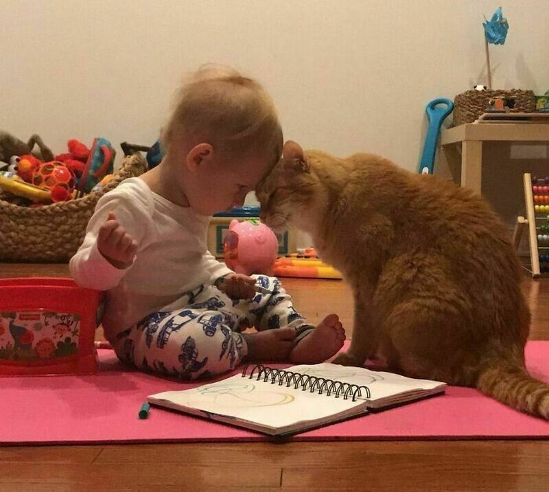 Утро полуторагодовалого ребенка и 14-летней кошки, полное нежности
