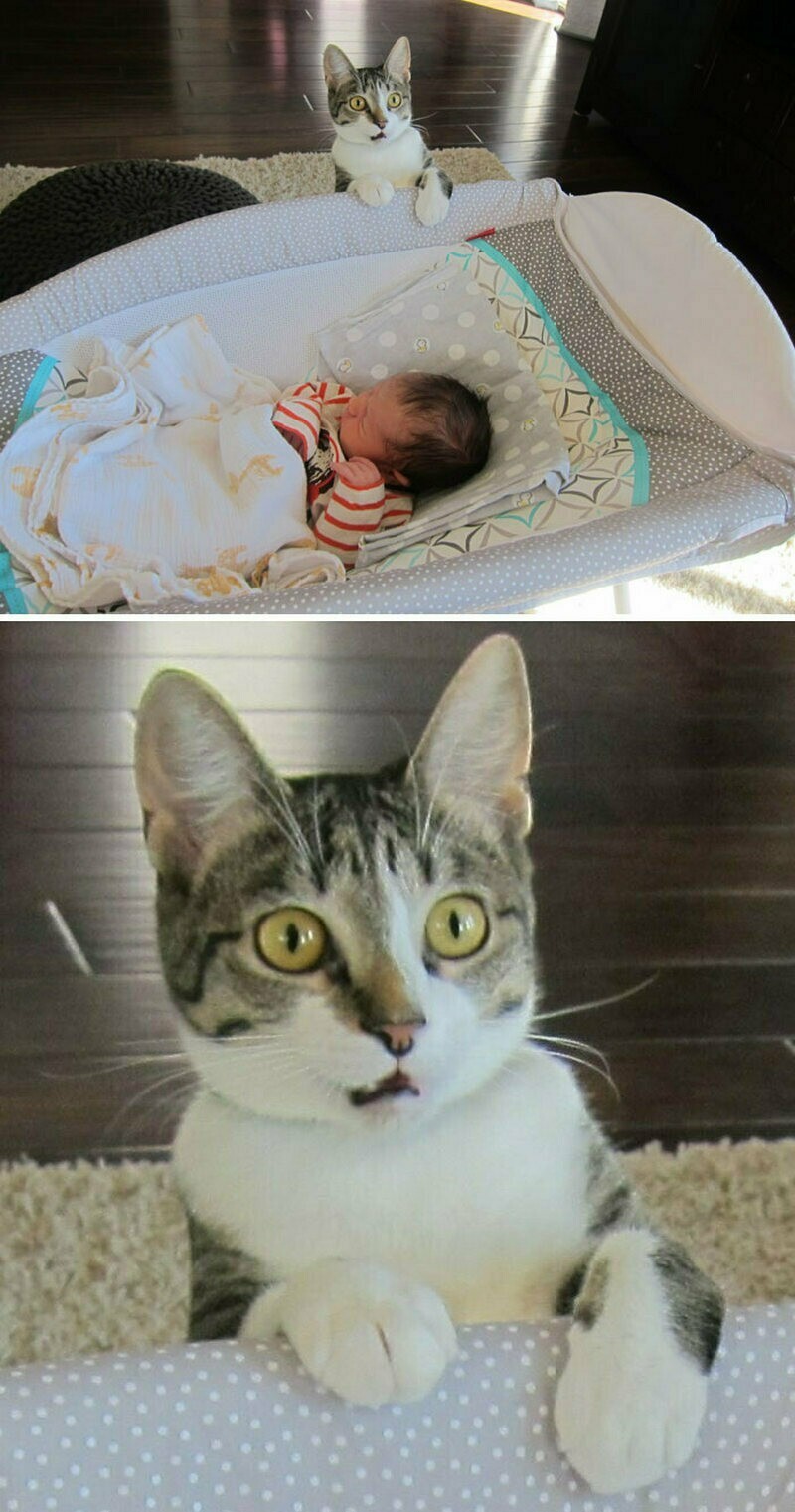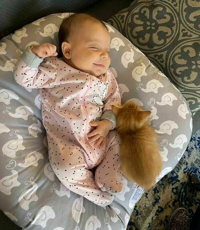 Кота долго не подпускали к ребенку, но оказалось, что все опасения напрасны
