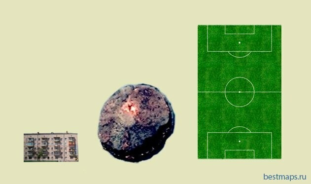На космических снимках видно, что пожар не так уж и велик. Хотя масштаб впечатляет - Размер воронки составляют 60 метров в диаметре, что равно половине площади большого футбольного поля (68х105). Максимальная глубина - 20 метров. Для сравнения - высота пятиэтажного дома: 17 метров.