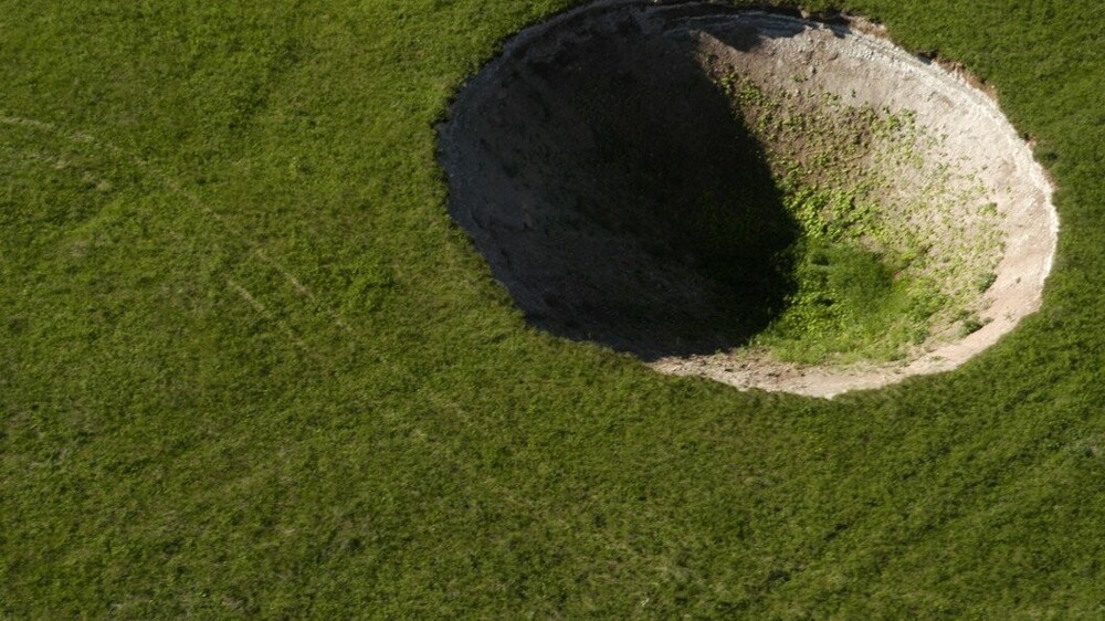 Во время бурения случилось непредвиденное. Под буровой внезапно появился провал и она буквально ушла под землю со всем оборудованием. Во время работ был пробурен тонкий свод подземной каверны и произошел обвал, поглотивший вышку и технику.